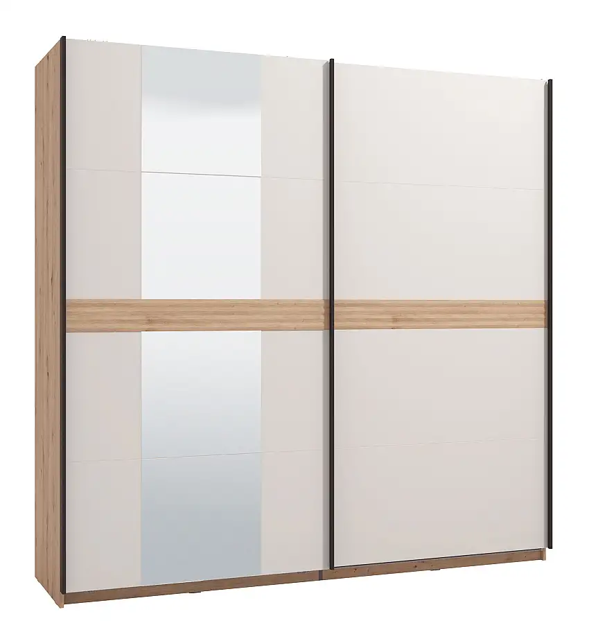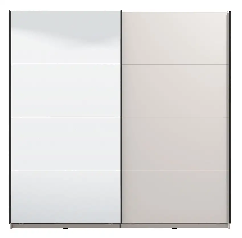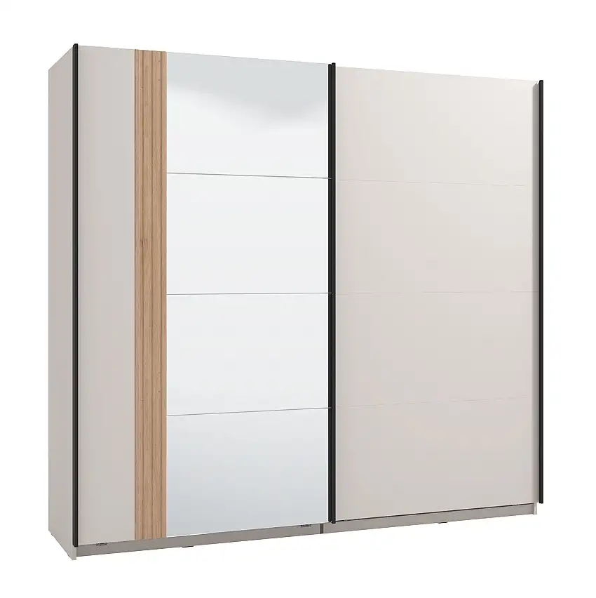• Schwebetürenschrank mit zwei Fächer Krupa 01, Farbe: Kaschmir, 2,2 Meter breit, Spiegeltür, ABS-Kanten, Maße: 217,5 x 220 x 62 cm, zwei Kleiderstangen