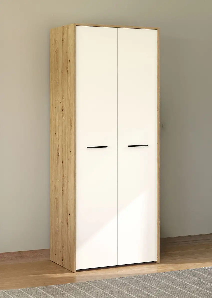 • Zweitüriger Kleiderschrank Brus 03, Farbe: Eiche Artisan / Weiß, eine Kleiderstange, ein Fach, Maße: 203,5 x 80,5 x 53 cm, für Schlafzimmer