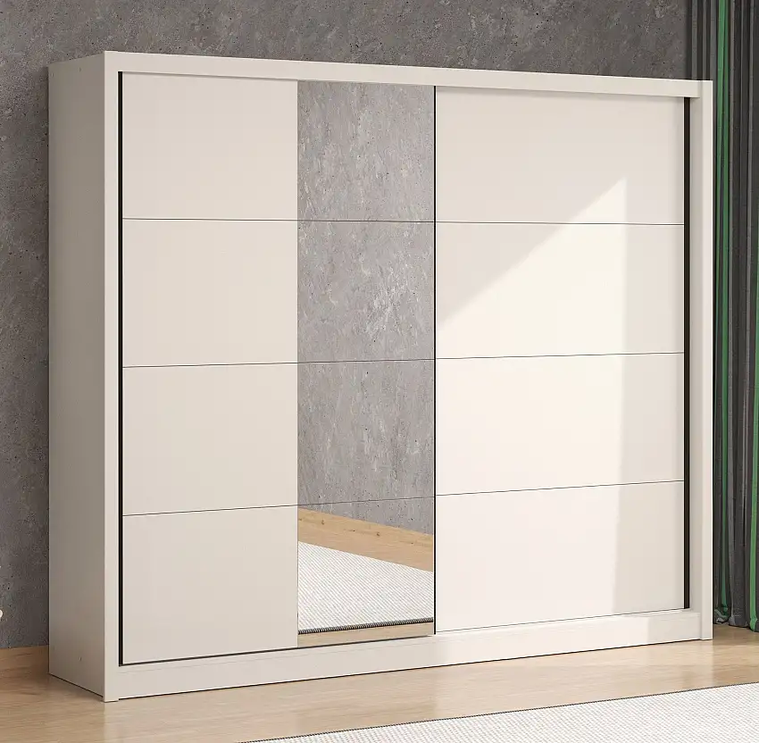 Breiter Kleiderschrank / Schiebetürenschrank Apatin 05, 2,5 Meter breit, Farbe: Kaschmir, zwei Kleiderstangen, 10 Fächer, Spiegel, Maße: 215,5 x 251 x 60 cm