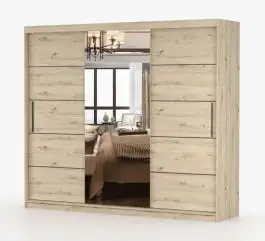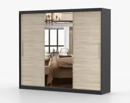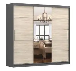 2,5 Meter breiter Kleiderschrank / Schiebetürenschrank mit Spiegel Artisan | Cevennen 21 | 218 x 250 x 61 cm | 3 Türen | 12 Fächer | Holzoptik