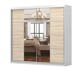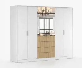 2,3 Meter breiter Drehtürenschrank / Kleiderschrank | Eiche / Weiß | Crevillente 01 | Spiegel | 215 x 230 x 51 cm | 1 Türen | 4 Schubladen | 5 Fächer