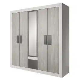 2,1 Meter hoher Kleiderschrank / Drehtürenschrank | Grau / Weiß | Jolais 02 Spiegel | 210 x 231 x 57 cm | 10 Fächer | 6 Schubladen | 4 Türen | 2-farbig