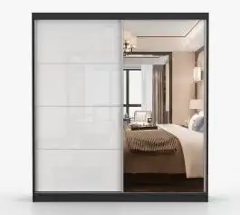 2,3 Meter breiter Schiebetürenschrank / Kleiderschrank mit Spiegel | Weiß / Schwarz | Gorski 69 | 218 x 233 x 61 cm | 3 Türen | 12 Fächer | Zweifarbig