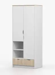 Drehtürenschrank / Kleiderschrank | Eiche / Weiß | Meneziou 07 | 193 x 80 x 50 cm | 2 Türen | 2 Schubladen | 9 Fächer | Griffmulde | Reichlich Platz