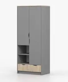 Drehtürenschrank / Kleiderschrank | Eiche / Grau | Meneziou 08 | 193 x 80 x 50 cm | 2 Türen | 2 Schubladen | 9 Fächer | Modernes Design | eckig