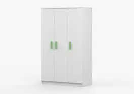 Drehtürenschrank / Kleiderschrank 1,2 Meter breit | Kleiderstange | 192 x 120 x 50 cm | Weiß | 9 Fächer | Smolikas 119 | 3 Türen | Holzgriffe
