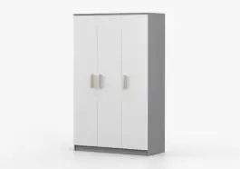 Drehtürenschrank / Kleiderschrank | 192 x 120 x 50 cm | Holzgriffe | Weiß / Grau | Kleiderstange | 9 Fächer | Smolikas 109 | 3 Türen | Kleiderstange
