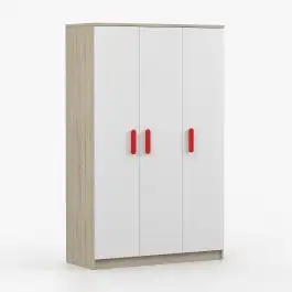 Drehtürenschrank / Kleiderschrank | 192 x 120 x 50 cm | Holzgriffe | Weiß / Sonoma Eiche | Smolikas 114 | Kleiderstange | 3 Türen | 9 Fächer