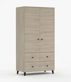 Drehtürenschrank / Kleiderschrank | Eiche | Sibillini 02 | 202 x 104 x 55 cm | 2 Türen | 4 Schubladen | Griffe: Metall schwarzfarben | Einfarbig