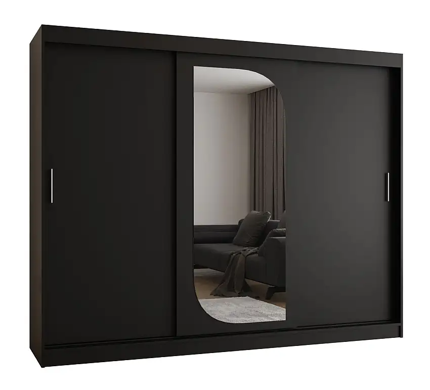 Schiebetürenschrank / Kleiderschrank Signalkuppe 23, Farbe: Schwarz, 2,5 Meter breit, zwei Kleiderstangen, 10 Fächer, eine Spiegeltür