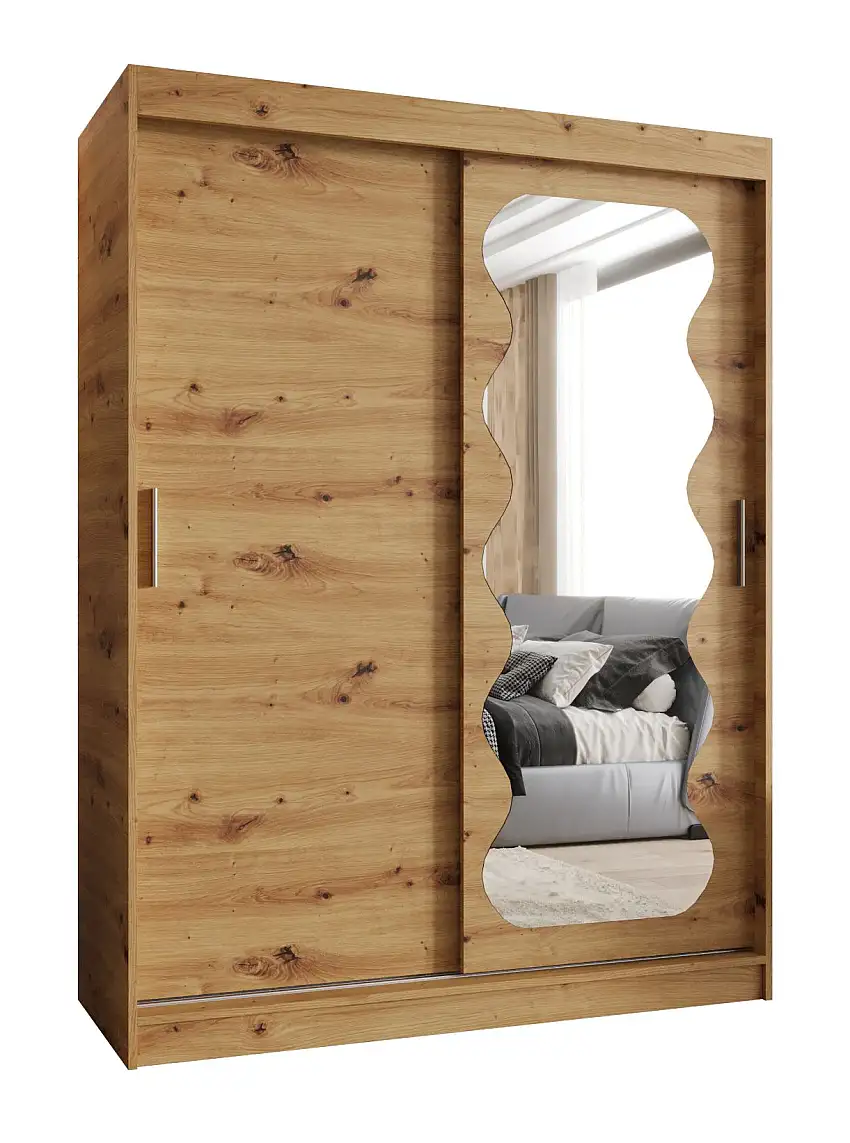Aktion!Schiebetürenschrank mit einen Spiegel Bernina 05, Farbe: Eiche Artisan, 1,2 Meter breit, fünf Fächer, zwei Kleiderstangen, Kleiderschrank, Aluminiumschienen