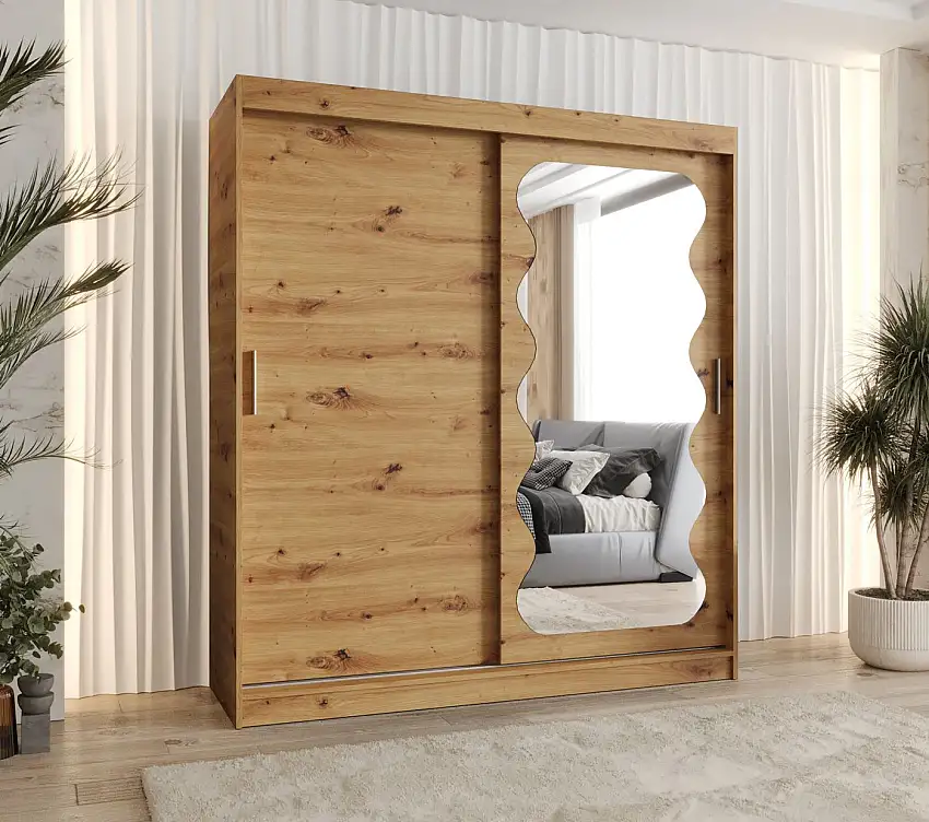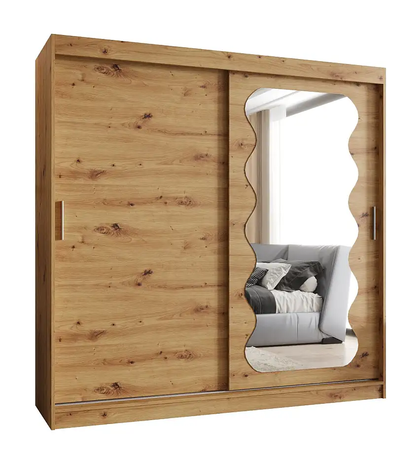 Aktion!Schiebetürenschrank mit einen Spiegel Bernina 17, Farbe: Eiche Artisan, 2 Meter breit, 10 Fächer, zwei Kleiderstangen, Kleiderschrank, Aluminiumschienen