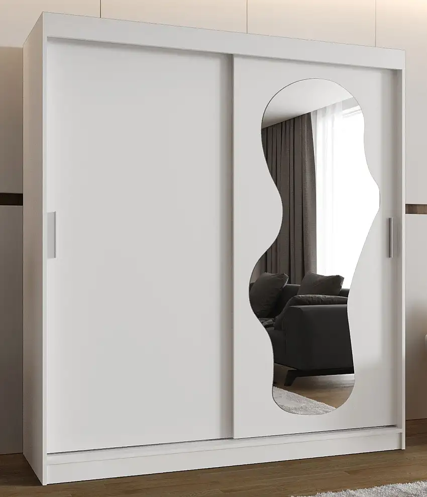 Aktion!Schiebetürenschrank Lagginhorn 14, Farbe: Weiß, 1,8 Meter breit, Aluminiumschienen, eine Spiegeltür, Kleiderschrank, 10 Fächer, zwei Kleiderstangen