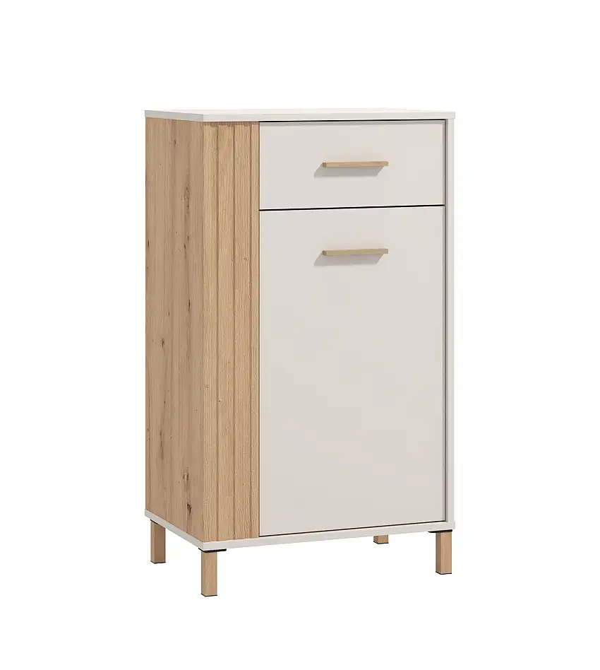 • Schuhschrank mit einer Schublade Venac 07, Farbe: Eiche Artisan / Kaschmir, eine Tür, drei Fächer, ABS-Kanten, Maße: 103 x 59,5 x 40 cm, modernes Design