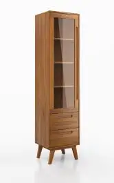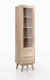 Vitrine Engordany 01 | Buche Vollholz massiv lackiert | Farbe: Eiche Rustikal | vier Fächer | Soft-Close-Funktion | zwei Schubladen | Maße: 200 x 50 x 39 cm