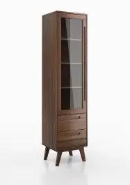 Vitrine Engordany 01 | Buche Vollholz massiv lackiert | Farbe: Walnuss | vier Fächer | Soft-Close-Funktion | zwei Schubladen | Maße: 200 x 50 x 39 cm
