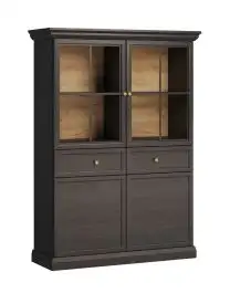 • Schwarz Graphit Vitrine Torsakala 21 mit 8 Fächern, 2 Schubladen, 2 Glastüren, 2 Holztüren, inkl. LED-Beleuchtung, 161 x 114 x 40 cm, 4 Einlegeböden