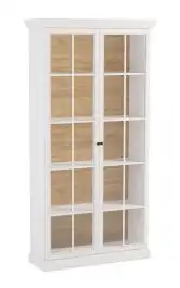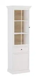 Aktion!Vitrine Torsakala 08, Glastüre in Holz eingefasst, 1 Holztüre, 3 Einlegeböden, 5 Fächer, 200 x 63 x 41cm, inklusive LED-Beleuchtung, Weiß Opal