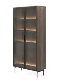 Vitrinenschrank mit zwei Glastüren Chaabane 01 | Farbe: Eiche Dunin / Schwarz | inkl. LED-Beleuchtung | Beine & Griffe: Metall | Maße: 194,5 x 91,5 x 39 cm