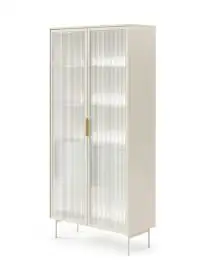 • Vitrinenschrank mit zwei Glastüren Chaabane 01 | Farbe: Kaschmir | inkl. LED-Beleuchtung | Beine & Griffe: Metall | Maße: 194,5 x 91,5 x 39 cm | ABS-Kanten