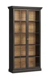 Vitrine Torsakala 19, Schwarz Graphit, inkl. LED-Beleuchtung, 2 Glastüren, 3 Einlegeböden, 5 Fächer, 200 x 103 x 41 cm, ABS, Griffe aus Metall