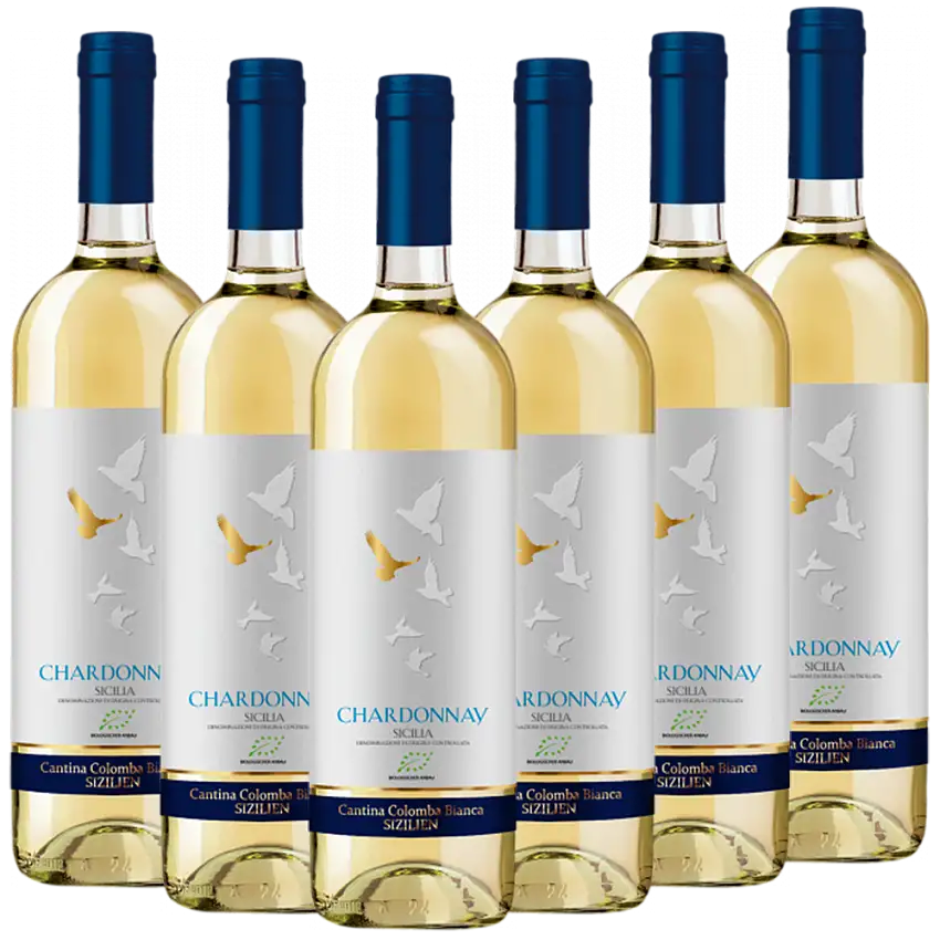 Aktion!Bio-Chardonnay Sicilia DOC Colomba Bianca Italien trocken – 6er Karton