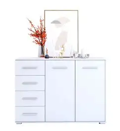Aktion!Anrichte mit viel Stauraum / Kommode | Weiß | Comarca 41 | 96 x 135 x 45 cm | 1 Türe | 4 Schubladen | 3 Fächer | Einfarbig | schlichter Stil