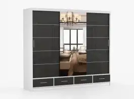Aktion!2,5 Meter breiter Schiebetürenschrank / Kleiderschrank mit Spiegel Schwarz / Weiß | Lusatian 29 | 218 x 250 x 61 cm | 4 Schubladen | 7 Fächer