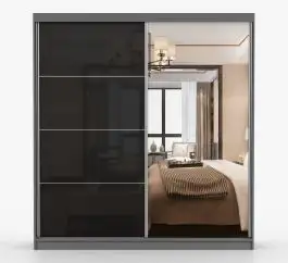 Aktion!2,3 Meter breiter Schiebetürenschrank / Kleiderschrank mit Spiegel Schwarz / Grau | Gorski 65 | 218 x 233 x 61 cm | 2 Türen | 12 Fächer | eckig
