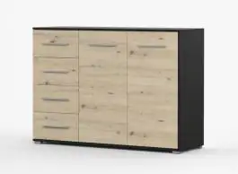 Kommode | 96 x 135 x 45 cm | Artisan / Schwarz | Comarca 19 | 2 Türen | 4 Schubladen | 3 Fächer | Zweifarbig | Front in Holzoptik | schlichter Stil