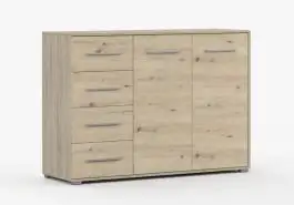 Kommode | 96 x 135 x 45 cm | Artisan / Eiche | Comarca 39 | 2 Türen | 4 Schubladen | 3 Fächer | Zweifarbig | klassisches Design | eckig und kompakt