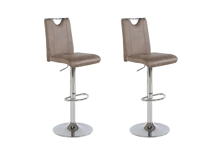 • FIRE Barhocker, 2er Set, Metall verchromt, Vintage-Stoff braun