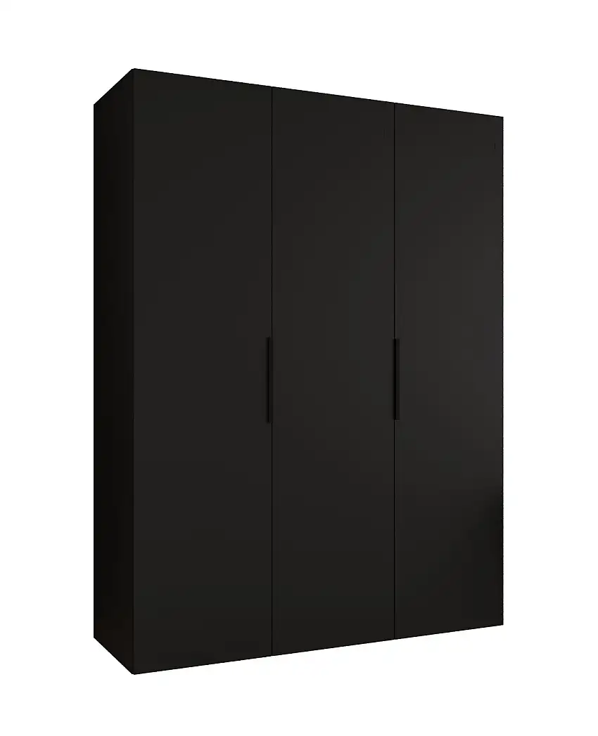 Drehtürenschrank / Kleiderschrank mit drei Türen Korab 17, Farbe: Schwarz, 1,5 Meter breit, Griffe: Schwarz, zwei Kleiderstangen, Soft-Close-Funktion
