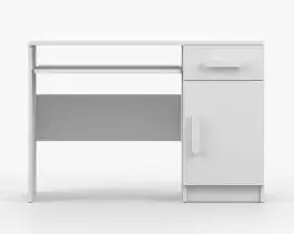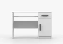 Aktion!1,1 Meter breiter Schreibtisch | 75 x 110 x 50 cm | 1 Schublade | 3 Fächer | Weiß | Smolikas 96 | 1 Türe | graue Holzgriffe