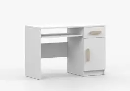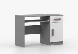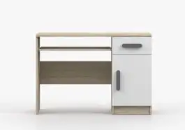 Aktion!1,1 Meter breiter Schreibtisch | 75 x 110 x 50 cm | 3 Fächer | 1 Schublade | Weiß / Grau | Holzgriffe | Smolikas 89 | 1 Türe