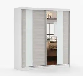Schiebetürenschrank / Kleiderschrank mit Spiegel | 218 x 203 x 61 cm | Grau-Weiß / Weiß | Gorski 33 | 2 Türen | 6 Fächer | viel Stauraum | eckig