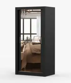 Schiebetürenschrank / Kleiderschrank mit Spiegel | Schwarz | Biokovo 04 | 200 x 100 x 64 cm | 2 Türen | 7 Fächer | viel Stauraum | Einfarbig