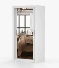 Schiebetürenschrank / Kleiderschrank mit Spiegel | Weiß | Biokovo 01 | 200 x 100 x 64 cm | 2 Türen | 7 Fächer | viel Stauraum | schmale Griffe