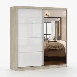Schiebetürenschrank / Kleiderschrank mit Spiegel | Seide / Weiß | Cuillin 05 | 218 x 183 x 61 cm | 2 Türen | 6 Fächer | hohe Kapazität | 2-farbig