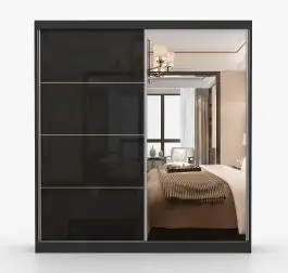 Schiebetürenschrank / Kleiderschrank mit Spiegel | Schwarz | Gorski 66 | 218 x 233 x 61 cm | 2 Türen | 12 Fächer | viel Stauraum | Einfarbig