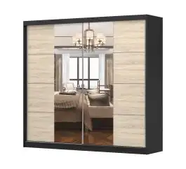 Schiebetürenschrank / Kleiderschrank mit Spiegel Eiche / Schwarz | Gorski 71 | 218 x 233 x 61 cm | 3 Türen | 12 Fächer | viel Stauraum | eckig