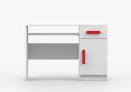 Aktion!Schreibtisch 1,1 Meter breit | 3 Fächer | 1 Schublade | Smolikas 93 | rote Holzgriffe | Weiß | 1 Türe | 75 x 110 x 50 cm