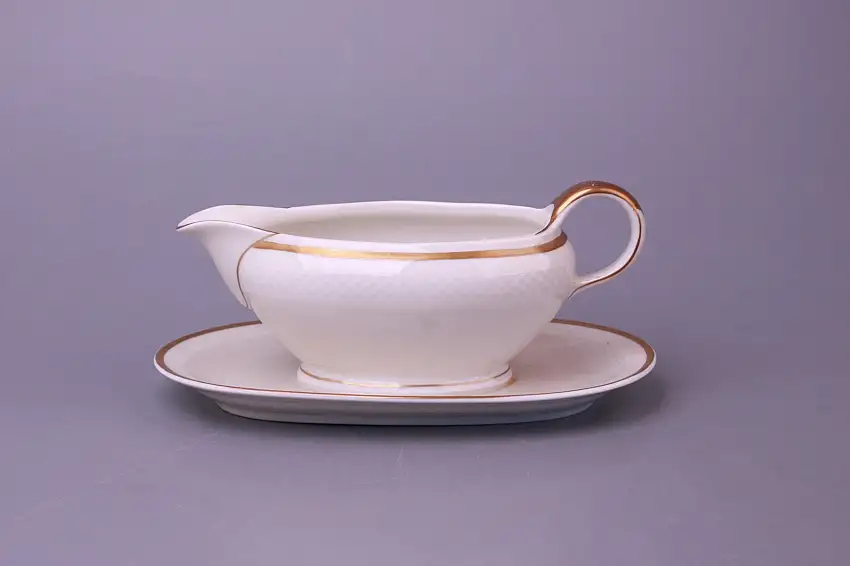 Sauciere mit Teller einteilig – Eschenbach Gitterrelief Goldrand