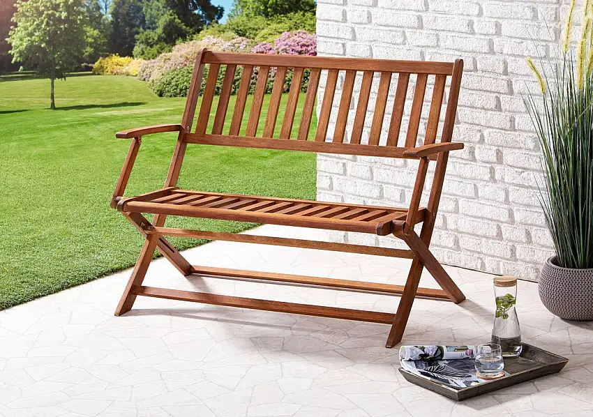 Aktion!2-Sitzer faltbare Gartenbank aus Eukalyptusholz, ca. 118 x 63 x 89 cm – Braun
