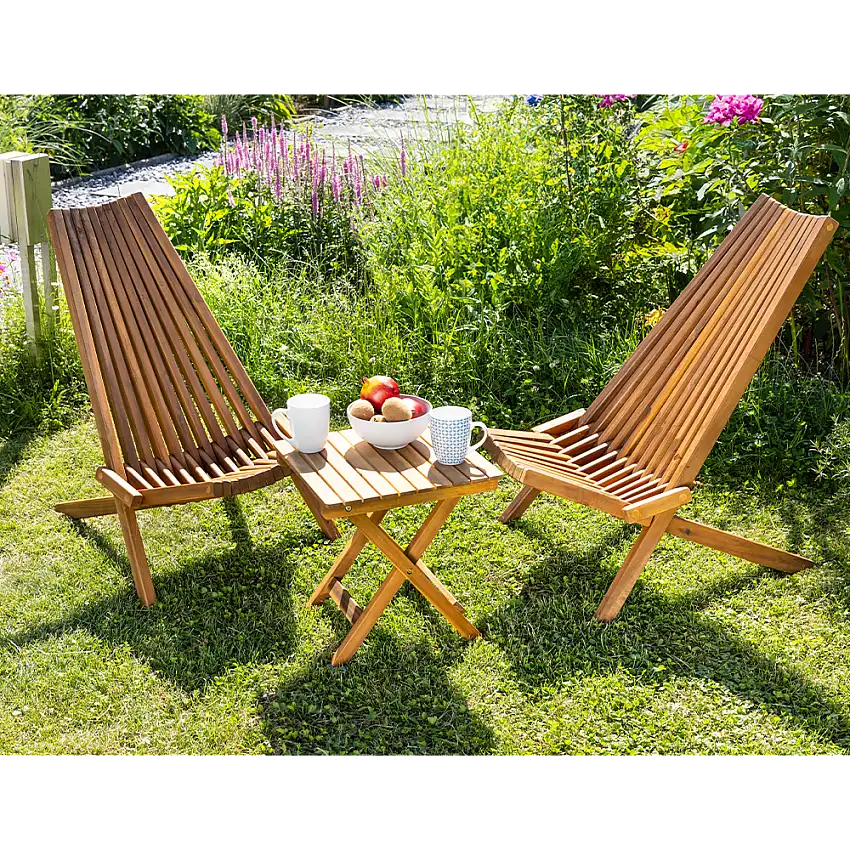 Aktion!3tlg. Holzliegestuhl mit Tisch aus Akazienholz klappbar – Braun