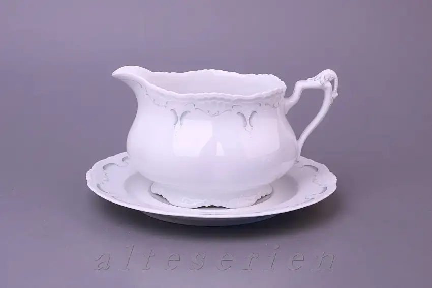 Sauciere mit Teller 2-tlg – Königl. pr. Tettau Ariadne Dekor in grau