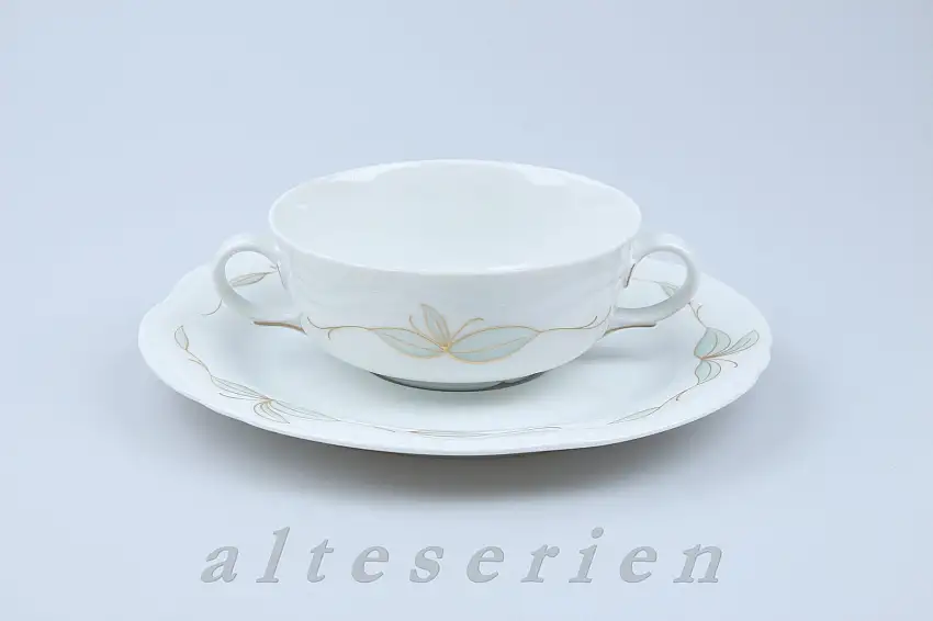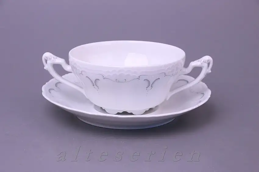 Suppentasse mit Untere – Königl. pr. Tettau Ariadne Dekor in grau