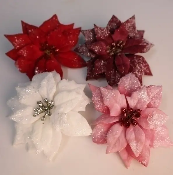 4er-Set Christstern, gefrostet, mit Clip, rot