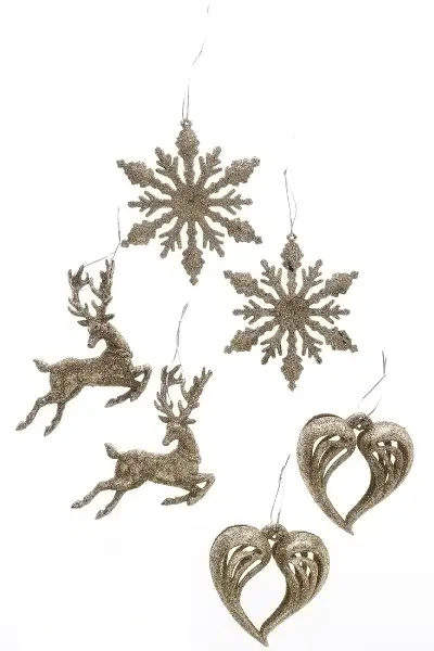 • 6er-Set Weihnachtsanhänger, Silberglitter