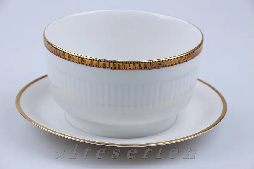 Sauciere mit Teller einteilig – Seltmann Vohenstrauß Unbekannte Formen Goldrand 5358
